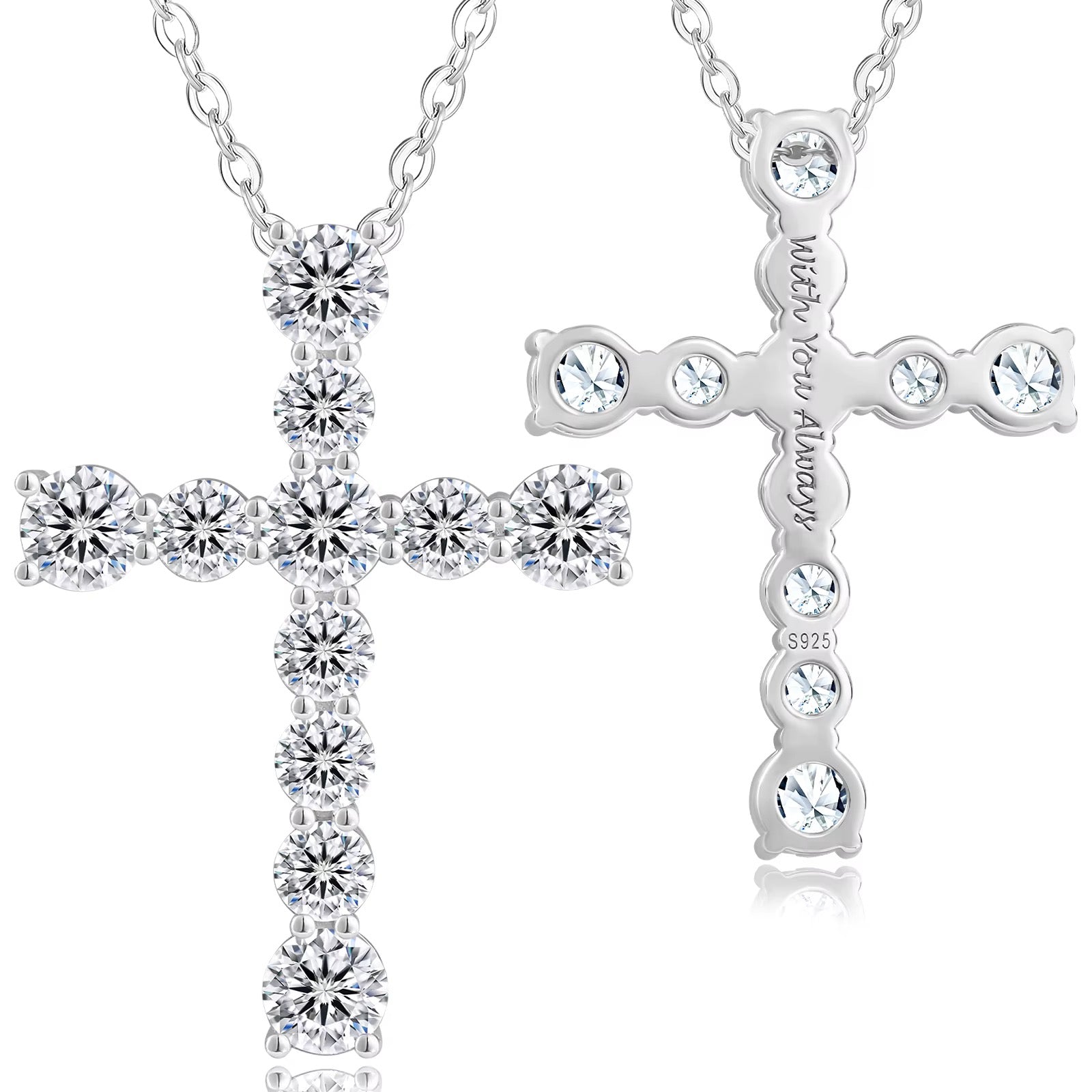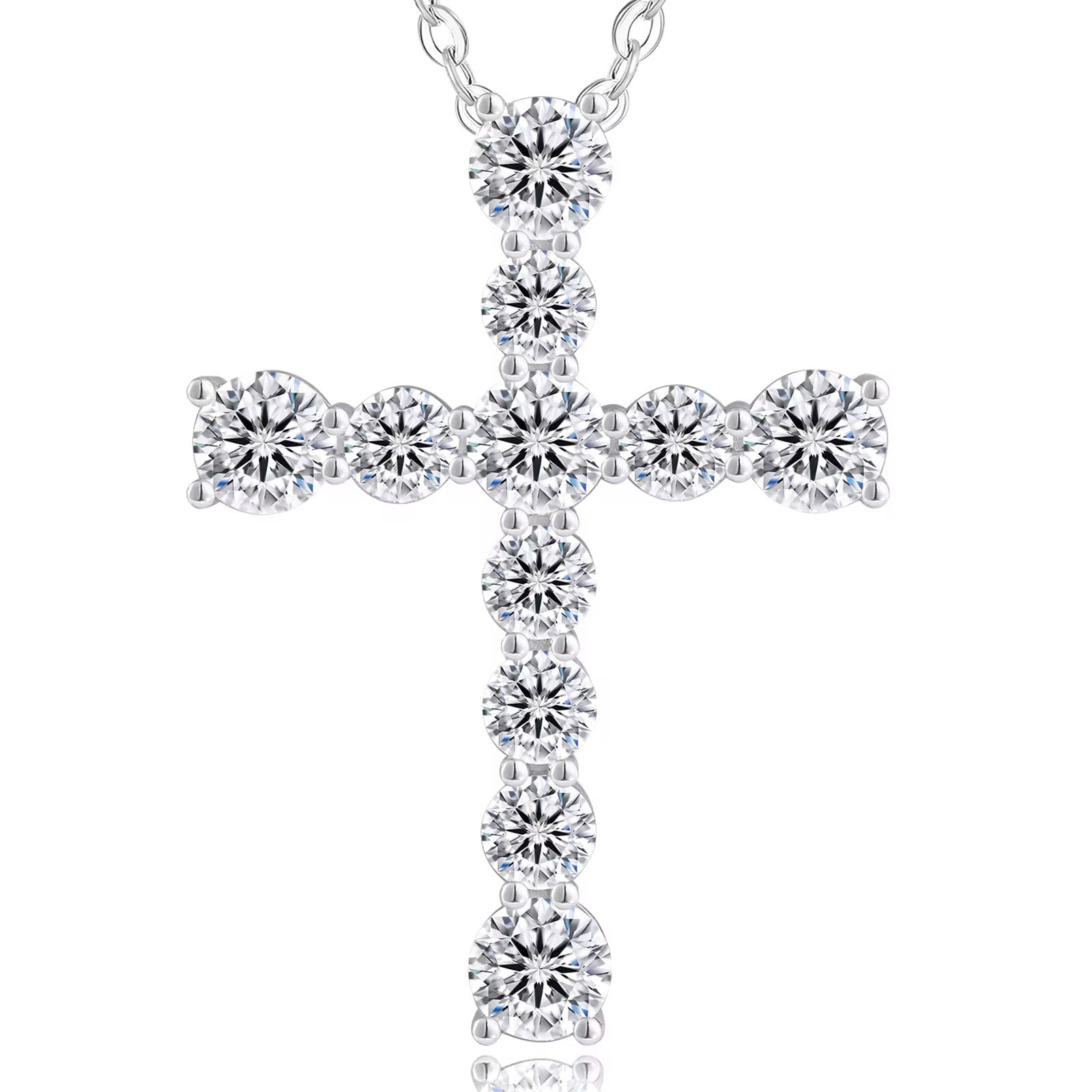 If you love religious jewelry, this Cross pendant is perfect for you; Handcrafted with 925 Sterling silver accompanied with Shining VVS D color Moissanite stones, you are guaranteed to become the talk of any room you walk into!